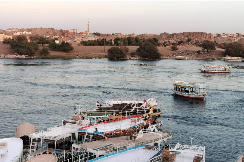 Die kleinen Holzboote, sogenannte Felukken oder Motorboote, starten meist vom Uferbereich nahe dem Stadtzentrum von Assuan – der Fahrer kennt den Weg.