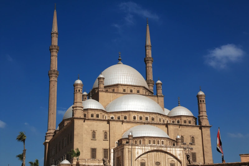 Die Mohamed Ali Moschee trägt ihren Namen nach dem albanischstämmigen Herrscher Mohamed Ali Pascha, der Ägypten zwischen 1805 und 1848 regierte und das Land grundlegend modernisierte. Mit ihren zwei schlanken Minaretten und der großen zentralen Kuppel erinnert sie stark an die berühmte Blaue Moschee in Istanbul – kein Zufall, denn osmanische Architektur war das erklärte Vorbild.