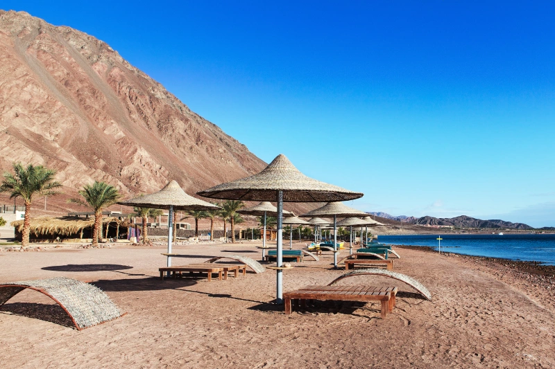 Sie gehört zur Sinai-Halbinsel und ist bekannt für ihre spektakuläre Unterwasserwelt, die beeindruckenden Berglandschaften und die außergewöhnliche geografische Lage, an der vier Länder zusammentreffen.